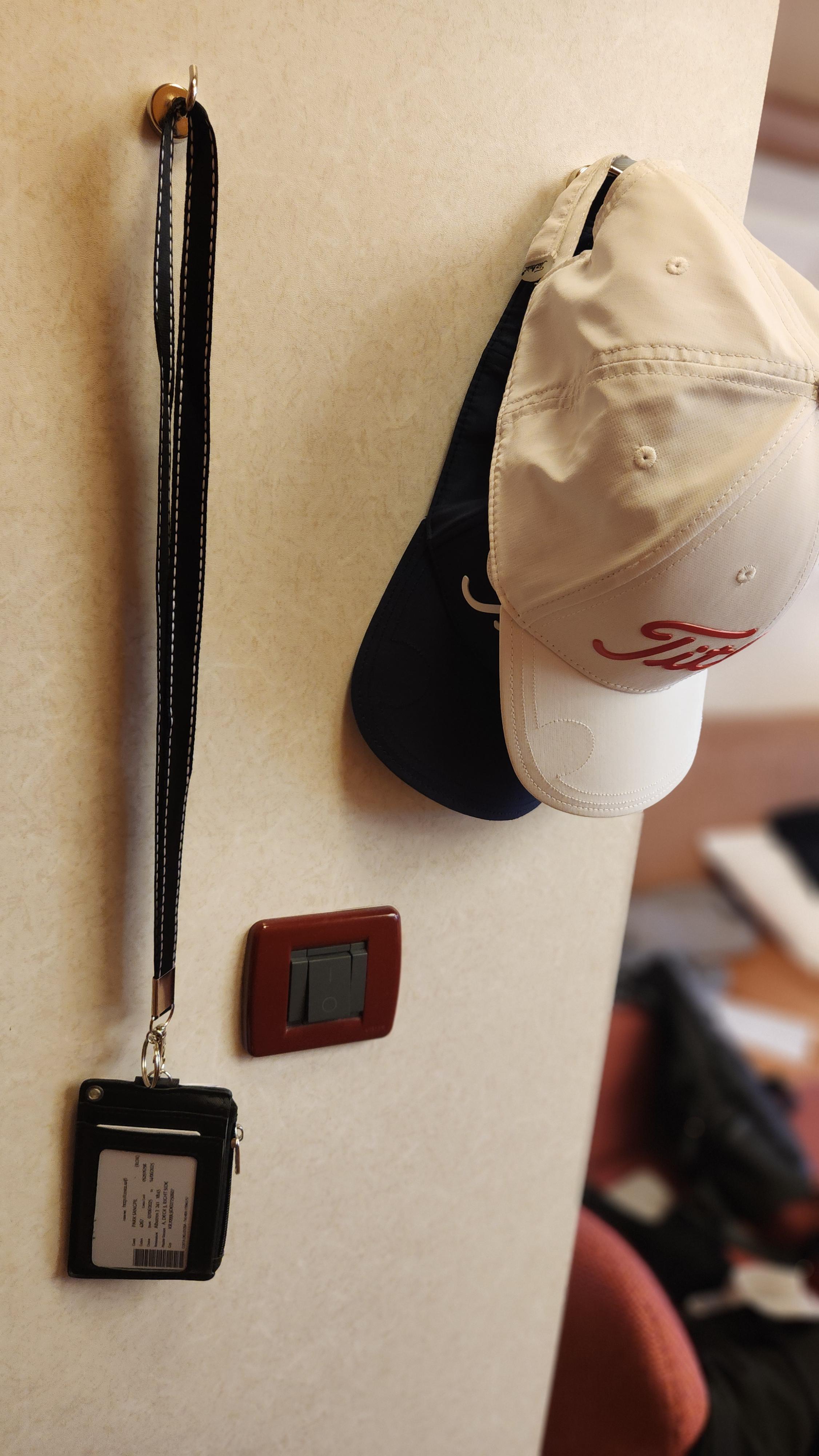 크루즈 선실의 벽은 모두 강철판으로 만들어져 있습니다. 쇠 위에 페인트칠과 인테리어를 해 놓은 것이기 때문에 모든 벽에는 자석을 붙일 수 있습니다. 자력이 약한 자석 훅은 간단한 모자만 걸을 수 있으므로 자력이 강한 자석을 10개 정도 준비해 가시면 빨랫줄을 연결해서 사용할 수도 있고 각 종 가방, 모자, 크루즈카드, 옷, 스카프 등 등 편리하게 사용할 수 있습니다.